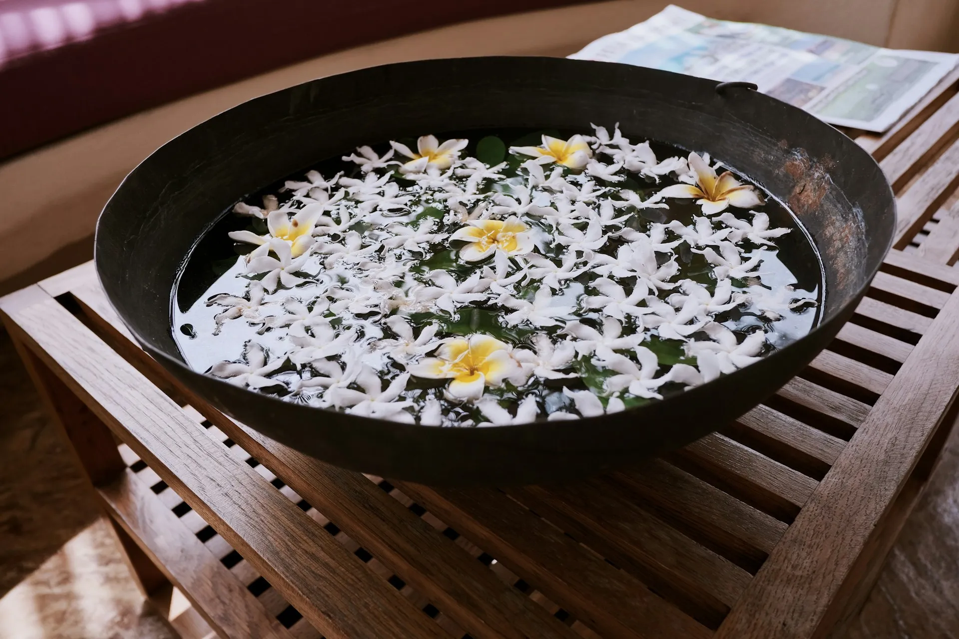 Wake up to the soft glow of sunrise over endless rice fields. Feel the hush of morning dew as you sip tea on your private terraces, embraced by the rhythm of nature. In Hamsa, time slows down. The garden breathes around you—lush greens, a quiet pool glimmering nearby, and the serenity of the hills. Sink into a warm bath surrounded by blooming plants, and let the stillness restore your spirit. Here, you don’t just rest—you return to yourself.